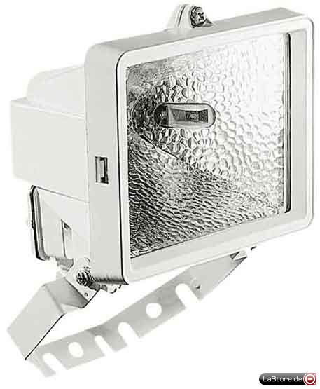 Sicherheitsglas, Spezialbügel für Wand-, Inneneck- und Außeneckmontage bei 150 W, 200 W und 500 W Strahler.