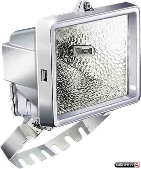 Sicherheitsglas, Spezialbügel für Wand-, Inneneck- und Außeneckmontage bei 150 W, 200 W und 500 W Strahler.