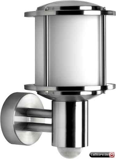 Automatic-Leuchte mit integriertem Bewegungsmelder und 200° Erfassungsbereich, 360° Unterkriechschutz für eine lückenlose Erfassung, witterungsbeständige Oberfläche aus lackiertem Edelstahl, Opalglas mit seidenmatter Optik, zusätzlicher Schaltausgang für den Anschluss weiterer Leuchten, verdeckter Anschlusssockel mit großem Verdrahtungsraum, doppelte Leitungseinführung für eine einfache und schnelle Montage, Anpassung des Erfassungsbereiches durch drehbare Linse und elektronische Justierung