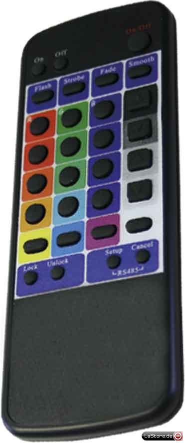 16 Farben direkt anwählbar, 4 Farbwechsel-Modi, 4 Helligkeitsstufen wählbar, Sperr- und Entsperrtaste, maximale Reichweite 10 m