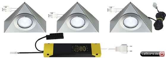 Pyramidenform, mit 1,8 m Siliconleitung und AMP-Stecker inkl. elektronischem Trafo 20-120 W, Lieferung inkl. Leuchtmittel QT9, 1 Leuchte mit Schalter. Trafo mit VDE, EMV, CE, MM.