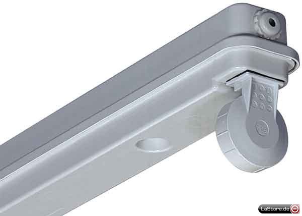 Leuchte für erschwerte Einsatzbedingungen wie Feuchtigkeit und Staub. Gehäuse aus hochwertigen Kunststoffen und speziellen Dichtungssystemen.