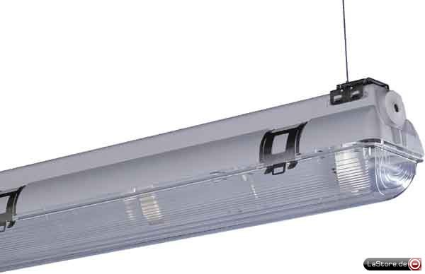 Gehäuse glasfaserverstärktes Polyester, gespritzte Prismenwanne PMMA, V2A-Verschlüsse, mit Deckenbefestigung in Schnapptechnik anschlussfertig verdrahtet.