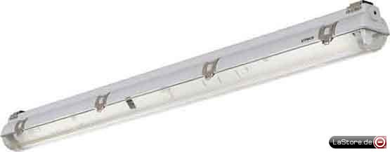 Gehäuse glasfaserverstärkes Polyester, gespritzte Prismenwanne PMMA, V2 A-Verschlüsse, mit Deckenbefestigung in Schnapptechnik, anschlussfertig verdrahtet.