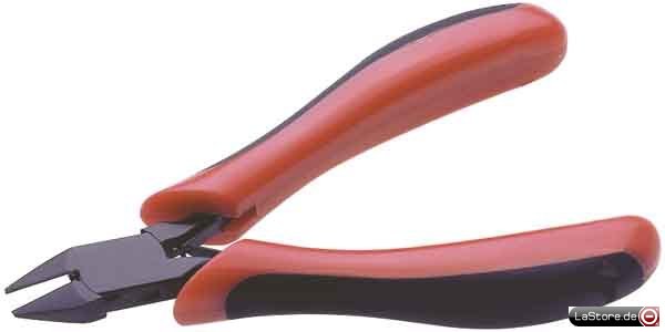 Mit durchgestecktem Gelenk, selbstöffnend durch Doppelblattfeder. Mit spitzem, abgeschrägtem Kopf und Schneidwate