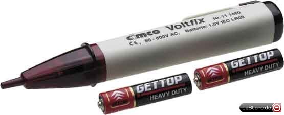 Berührungslose, optische und akustische Erkennung von Wechselspannung. Schnelles, exaktes Auffinden von Leitungsbrüchen in offenliegenden Kabeln, inkl. 2 Batterien 1,5 V