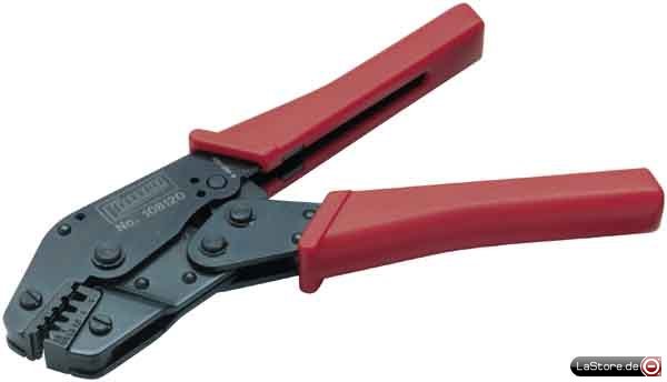 Presszange für Aderendhülsen, hebelübersetzt, mit Ratschenmechanik und nachstellbarer Sperrvorrichtung (Druckpunktentriegelung)