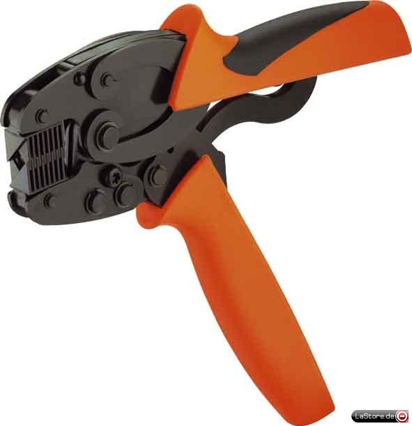 Aderendhülseneinführung von vorn, Zwangssperre garantiert Qualitätscrimp, Entriegelungsmöglichkeit bei eventueller Fehlbedienung, für Aderendhülsen mit und ohne Kunststoffkragen, nur ein Gesenk für den gesamten Querschnittsbereich