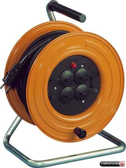 Handwerkerausführung, mit tropfwassergeschützten Schutzkontakt-Steckdose 2-polig + E, 16A, 250V. Tragegriff aus verzinktem Stahlrohr mit isoliertem Handgriff.