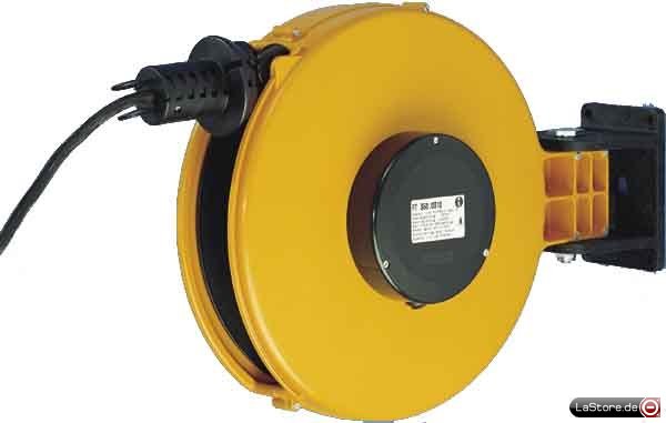 Stabile Ausführung im Kunststoffgehäuse, abschaltbare Arretierung, mit Flachschleifringen, mit Wandhalterung. Spiralfederantrieb für ca. 30.000 Arbeitsspiele. Flachschleifringe 16 A, 250/380 V~. Serienmäßig mit Wandhalter. Deckenhalter als Zubehör.