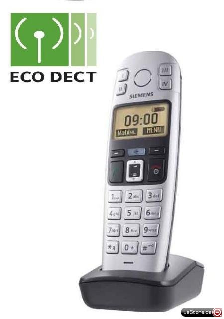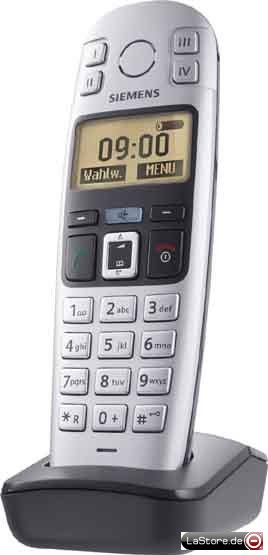 Dieses Siemens Siemens Mobilteil incl.Ladeschale titanium Gigaset E36 ti ist ein zusätzliches Mobilteil mit Ladestation zum anmelden an ein vorhandenes Siemens Gigaset E360/365. Die Bedürfnisse von Familien und älteren Menschen waren der Maßstab für die Entwicklung des Siemens Gigaset E360/365. Hinter dem schicken Design steckt weitaus mehr als nur schöne Optik: Ergonomie, Bedienbarkeit und Sicherheit werden bei dem Schnurlostelefon im wahrsten Sinne des Wortes "groß geschrieben".