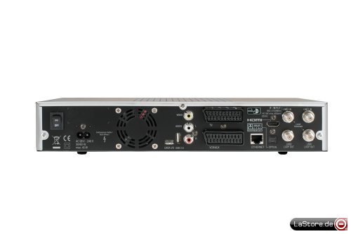 Betriebssystem auf LINUX basierend, HDMI- Ausgang, Video- Ausgang, 16stellige alphanummerische Anzeige, 1x USB 1.0 Anschluß für Software- Update, 2x USB 2.0 Anschluß, Ethernet- Schnittstelle zur Übertragung des MPEG- Datenstromes auf PC, Bild in Bild- Funktion, Einlesen und Abspielen von MP3- Dateien, JPEG- Viewer zur Ansicht und zum Speichern von Bildern, 160 GB Festplatte