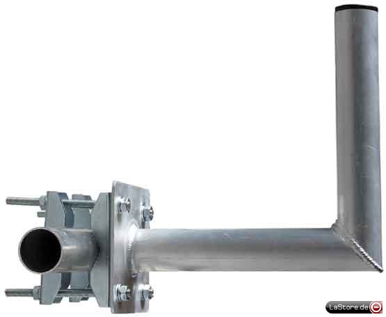 Dieser leichte Aluminium-Mastausleger wird in Deutschland hergestellt und zwecks Korrosionsschutz nach der Fertigung poliert und eloxiert. Er ist TÜV und Windlast geprüft. Die drehbaren Befestigungsklammern ermöglichen eine Montage an senkrechten und waagerechten Rohren aller Art. Er kann so z.B. an Balkongeländer montiert werden. Außerdem kann er an einen Wandhalter / Mast angebracht werden als Ausleger, oder um "so um eine Ecke" zu kommen. Der Rohrdurchmesser beträgt 50mm, der Abstand 300mm und die Masthöhe
