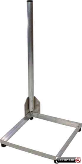 Dieser leichte Aluminium-Balkonständer wird in Deutschland hergestellt und zwecks Korrosionsschutz nach der Fertigung poliert und eloxiert. Der Rohrdurchmesser beträgt 50mm, die Masthöhe 1000mm. In den Ständer passt zur Beschwerung eine Standart-Betonplatte in der Größe 500 x 500mm. Er ist TÜV und Windlast geprüft. Zum Transport kann er leicht zerlegt werden.