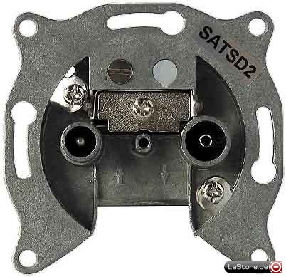 Class A Zwei-Loch-Stichdose für den Sat, und terrestrischen Empfang. Der Frequenzbereich ist 5 - 2400 MHz. Die Anschlußdose ist Digital-Rückweg-Sonderkanaltauglich und hat eine Gleichspannungsdurchgang. Durch das hohe Schirmungsmaß von >
