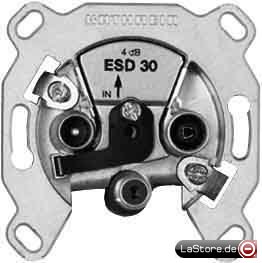 Einzeldose (1x IEC TV, 1x IEC Radio, 1x F-Sat) Überträgt Fernspeisespannung über den Sat-Auslass