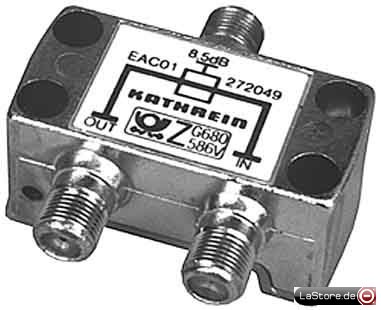 Anschlussart: F-ConnectorAusführung: AbzweigerFrequenzbereich: 5 1000 MHzMax. Abzweig-/Verteilerdämpfung: 8,5 dBMax. Durchgangsdämpfung: 2 dBAnzahl der Abzweige: 1Anzahl der Ausgänge: 1