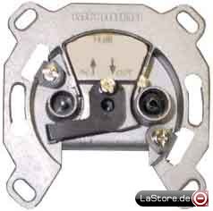 Einzeldose für Sat-Anlagen mit 2 Niederführungen, z.B. für Twin-Receiver Mit Gleichspannungsdurchlauf über beide Auslässe