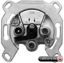 Einzeldose in Anlagen mit 2 Niederführungen LZB für Anschluss eines Twin-Receiver 1x IEC TV, 2x F-SAT Gleichspannungsdurchlass über beide Sat-Auslässe