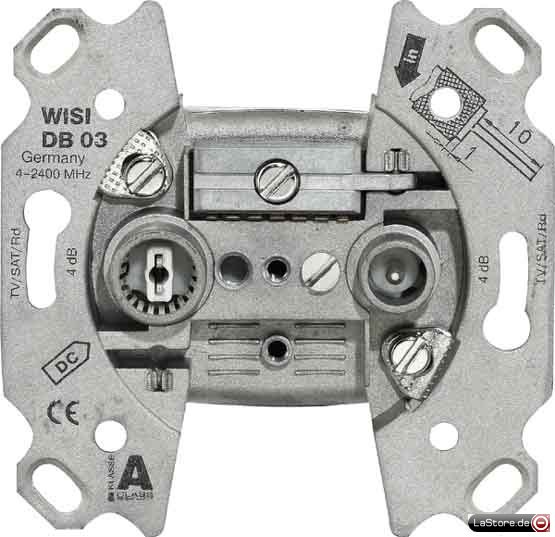 Anschlussdämpfung bei 860 MHz: 4,5 dBAnschlussdämpfung bei 2150 MHz: 6,5 dBAnzahl der Auslässe: 2Ausführung: StichdoseFrequenzbereich: 4 2400 MHz
