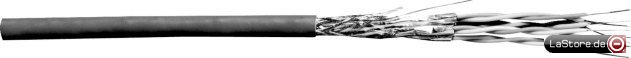 J-02YSCH 4 x 2 x 0,56 mm AWG 23/1 PiMF, 900 MHz S/FTP 100 Ohm Individuell foliengeschirmte Aderpaare, welche mit einem Gesamtschirm aus Kupfergeflecht umgeben sind. Diese Installationskabel (900 MHz) sind zum Aufbau von Verkabelungsstrecken der Klasse F geeignet. Normen: ISO/IEC 11801, EN 50173-1, EN 50288-4-1, IEC 61156-5 Anwendung: - Installationskabel zwischen Verteilerpanel und Geräteanschlussdose als Etagenverkabelung (Tertiärverkabelung). Bestens geeignet für alle Anwendungen der Klassen D bis F Multimedia (Video, Daten, Sprache) 10 Gigabit Ethernet, VoIP, PoE