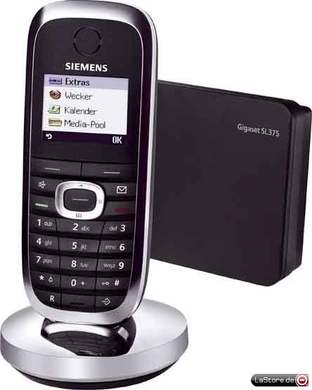 Der Award-Gewinner* SL375 ist das kompakteste Leichtgewicht von Siemens Gigaset. Dank der integrierten Bluetooth®-Technologie bietet es Ihnen verbesserte Kommunikationsfreiheit. Übertragen Sie Adressdaten als vCard zu und von Ihrem Handy oder verbinden Sie ein drahtloses Headset, so dass Sie sich frei bewegen können. Zudem ermöglicht die Gigaset QuickSync Software eine sehr einfache Datensynchronisation. Sie können das Telefon Ihren Bedürfnissen gerecht einstellen, indem Sie einfach Ihren favorisierten polyphonen Klingelton aus der vorinstallierten Liste auswählen oder verschiedene Bilder den Telefonbucheinträgen zuordnen mittels Picture CLIP.