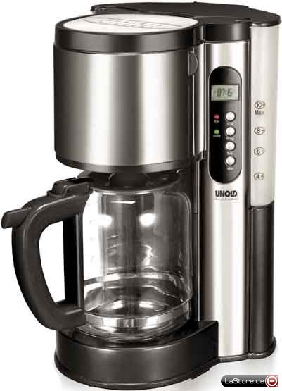 Ausführung Kaffeeautomat, Ausführung der Kanne Glaskanne, Warmhalteplatte, Timer, Nachtropfsperre, Farbvariante Edelstahl/schwarz