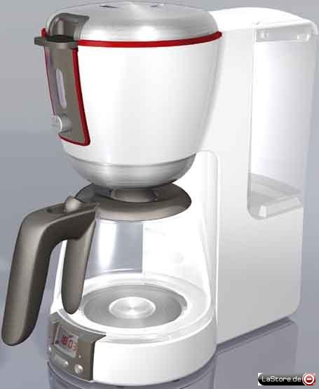 Ausführung: KaffeeautomatFassungsvermögen: 1200 mlAusführung der Kanne: IsolierkanneFarbvariante: Edelstahl/weiß/rot