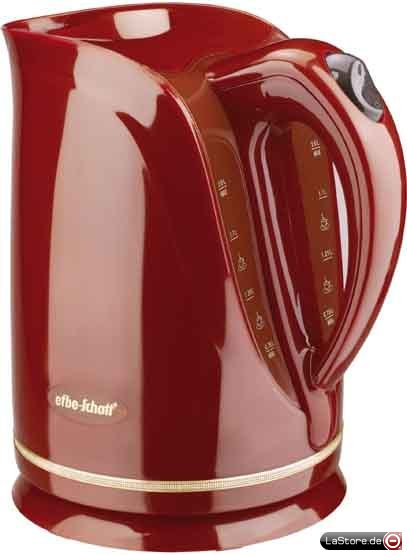 Ausführung: WasserkocherHeizschlange: verdecktFassungsvermögen: 1,7 lWerkstoff des Behälters: KunststoffLeistung: 2000 WWasserstandanzeige: außenFarbvariante: bordeaux