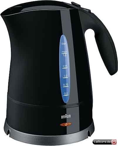 Ausführung: WasserkocherHeizschlange: verdecktFassungsvermögen: 1,6 lWerkstoff des Behälters: KunststoffLeistung: 2200 WWasserstandanzeige: außenFarbe: schwarzFarbvariante: schwarz