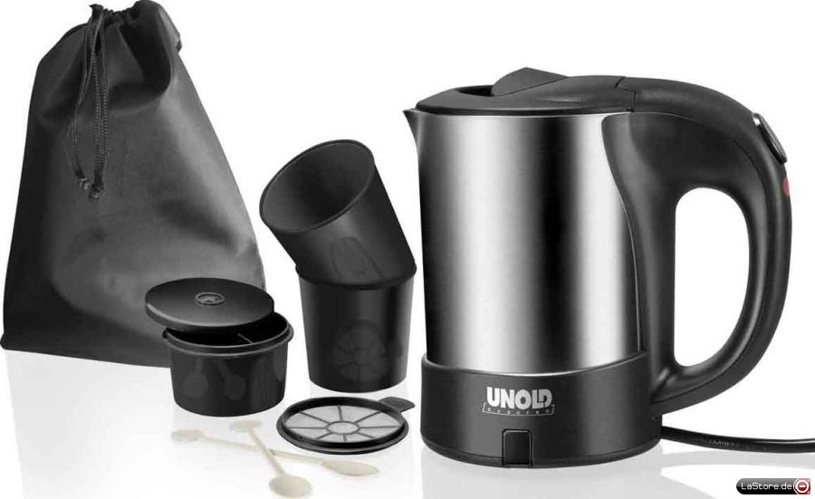 Ausführung: Wasserkocher Heizschlange: verdeckt Fassungsvermögen: 0,5 l Werkstoff des Behälters: Edelstahl Leistung: 1000 W Wasserstandanzeige: ohne Farbvariante: Edelstahl/schwarz