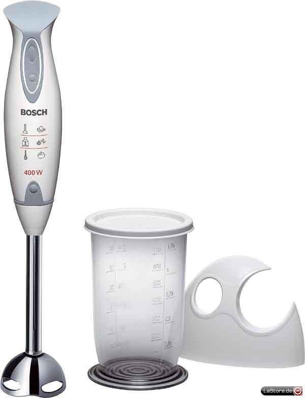 Ausführung Stabmixer, Leistung 400 W, Geschwindigkeitsregelung 2 Stufen, Behälter Kunststoff, Farbvariante weiß/telegrau