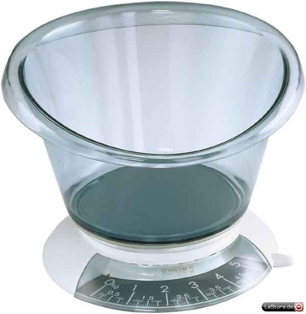 Tragkraft 5 kg, manuelle 0-Stellung, die ein Zuwiegen ohne umständliches Umfüllen ermöglicht, spülmaschinenfest