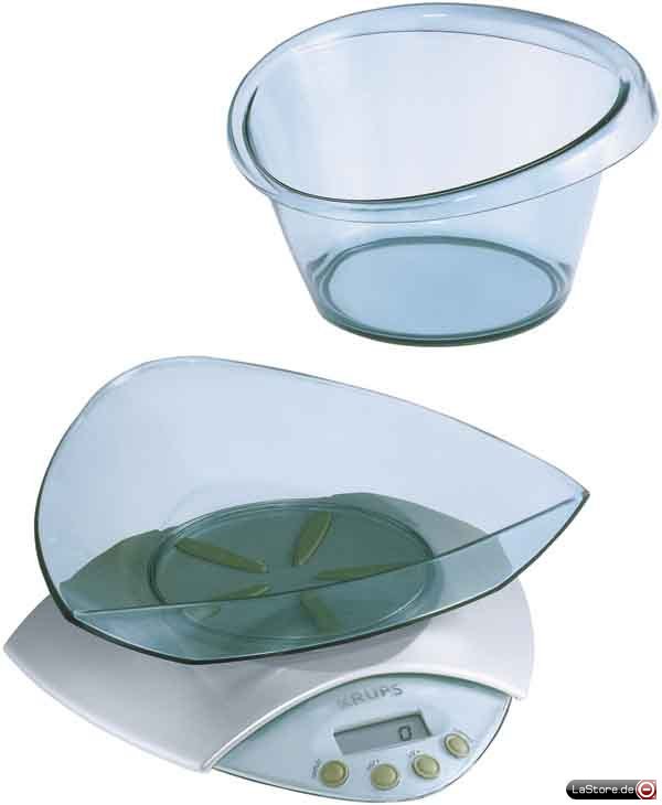 Zielgewicht-Programmierung mit akustischem Signal, automatische 0-Stellung und automatische Endabschaltung, spülmaschinengeeignet, transparente Waagschale und Schüssel