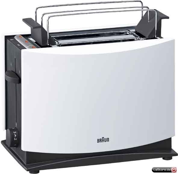 Stufenlose Röstgradkontrolle, Aufwärmfunktion, Auftaufunktion, automatische Brotzentrierung, Stopptaste zur Unterbrechung des Toastvorgangs, automatische Abschaltung bei Klemmen des Toastes, separater Brötchenaufsatz, Krümelschublade, manueller Brotheber