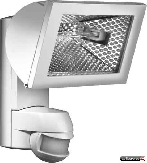 Halogenstrahler mit integriertem Bewegungsmelder mit 200° Erfassungsbereich, Programmierbar per Fernbedienung, Strahlerkopf und Bewegungsmelder verstellbar, dreh- und neigbare Kugelkopf-Technik, integrierter Wahlschalter für Testfunktion/Automatikbetrieb, Einhand-Stecksockelmontage, doppelte Membran-Leitungseinführung.