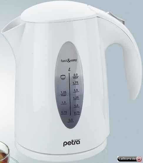 Ausführung: WasserkocherHeizschlange: verdecktFassungsvermögen: 1 lWerkstoff des Behälters: KunststoffLeistung: 2200 WWasserstandanzeige: außenFarbe: weißFarbvariante: weiß