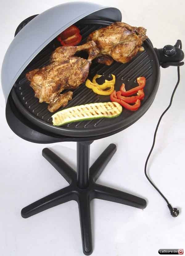 Ausführung der Grillfläche Grillplatte beschichtet, Leistung 2200 W, Breite 550 mm, Höhe 1000 mm, Mit Thermostat, Bauform Standgerät, Farbvariante schwarz/silber