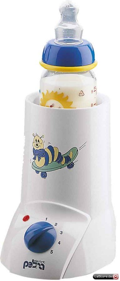 Erwärmt Babykost in Flaschen und Gläschen, stufenlos einstellbarer Temperaturregler, Kontrolllampe, Überhitzungsschutz, Fertigkostheber, wärmeisolierendes Kunststoffgehäuse, Kabelaufwicklung