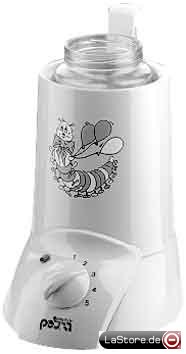 Erwärmt Babykost in Flaschen und Gläschen, stufenlos einstellbarer Temperaturregler, Kontrolllampe, Überhitzungsschutz, Fertigkostheber, wärmeisolierendes Kunststoffgehäuse, Kabelaufwicklung
