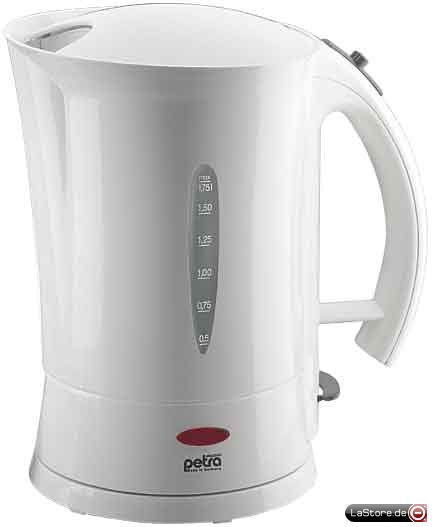Ausführung: WasserkocherHeizschlange: verdecktFassungsvermögen: 1,75 lWerkstoff des Behälters: KunststoffLeistung: 2000 WFarbe: weiß