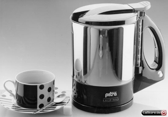 Edelstahl-Topf, CentralCordless-Technik: abnehmbarer Topf mit um 360° drehbarer Steckverbindung, Start/Stopp-Taste, KochStopAutomatic, Sicherheitsdeckel, Trockengeh- und Überhitzungsschutz, Kontrolllampe, außen liegende Wasserstandsanzeige, Sockel mit Kabelaufwicklung und integriertem Netzanschluss
