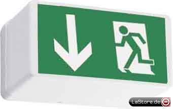 Wandanbauleuchte, Abdeckung Kunststoff opal, L=240 mm, B=126 mm, H=78 mm, Schaltungsart wahlweise in Bereitschaft- oder Dauerschaltung anschließbar, Betriebsgerät Netz/Not EVG, Erkennungsweite 21 m, Kombifolie mit Rettungszeichen beigelegt, inkl. Leuchtmittel