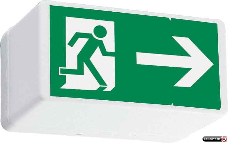 Wandanbauleuchte, Abdeckung Kunststoff opal, L=240 mm, B=126 mm, H=78 mm, Schaltungsart wahlweise in Bereitschaft- oder Dauerschaltung anschließbar, Betriebsgerät Netz/Not EVG, Erkennungsweite 21 m, Kombifolie mit Rettungszeichen beigelegt, inkl. Leuchtmittel