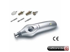 Zusammen mit der stufenlosen Geschwindigkeitsregelung und dem Rechts-/Linkslauf wird eine professionelle Fuß- und Nagelpflege möglich, wie es sonst nur beim Fußpfleger möglich ist.