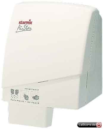 Wandgerät für Festanschluss. Schlagfestes Kunststoffgehäuse, strömungsoptimierte Jet-Düse, Laufzeit von 30 Sek. bis 60 Sek. vom Fachmann einstellbar, absaugbares Lufteintrittsgitter, Sicherheits-Temperaturbegrenzer, Thermo-Schmelzsicherung