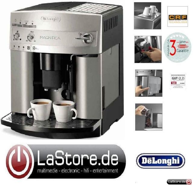Die Delonghi ESAM 3200 ist baugleich zur ESAM 3000 - allerdings in edler silberner Ausstrahlung. Auf Knopfdruck bereitet das Gerät Kaffee und Espresso zu. Aufgeschäumt wird hier nach der herkömmlichen Art direkt im Milchschaumkännchen oder der Tasse. Das Gerät wurde als baugleicher Typ von Stiftung Warentest bereits mit "gut" getestet (12/2004).