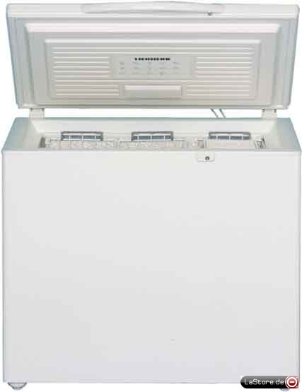 StopFrost-System, elektronische Steuerung mit Kindersicherung, digitale Temperaturanzeige im Truhengriff, optischer und akustischer Temperatur-Tonwarner (abschaltbar), Tonwarner bei zu lange geöffnetem Truhendeckel, SuperFrost-Automatik, FrostControl-Anzeige, Kontrollleuchten für Betrieb, Alarm, SuperFrost und Kindersicherung, elektronischer Temperaturregler (kindersicher), Gefrierplan am Innendeckel, eingeschäumter Verflüssiger, Gefriertablett mit Kälte-Akku, Trennwand - bestehend aus 2 herausnehmbaren Gefriertabletts - auch als Wasserauffangschale verwendbar, Tauwasserablauf