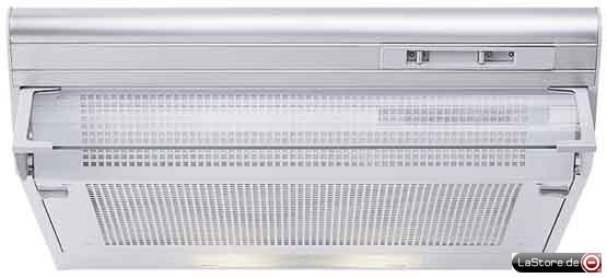 Zur Aufhängung unter einen 60-cm-Hängeschrank oder freihängend zur Wandbefestigung, Ab- oder Umluftbetrieb, 1 Lüftermotor, Arbeitsplatzbeleuchtung 2x40 W