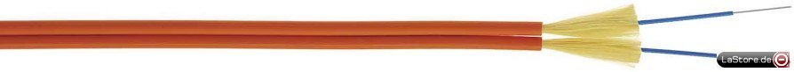 LWL-Innenkabel / halogenfrei / mit semiloser Vollader I-V(ZN)H 2 G 50/125 2,7 B 600 / 0,8 F 1200 (OM2) Diese Duplexkabel in Bauform Figur "8" mit Kompaktader (V) und Aramid als Zugentlastung mit flammwidrigem, halogenfreiem Außenmantel (FRNC) sind zur direkten Steckermontage mit Klebesteckern (Zugentlastung je Faser) und für Fusionsspleiße geeignet. Eingefärbtes Sekundärcoating mit Trennschicht zur primärgecoateten Faser, geeignet für größere Absetzlängen. Anwendung: Als Verbindungsleitungen oder Installationskabel